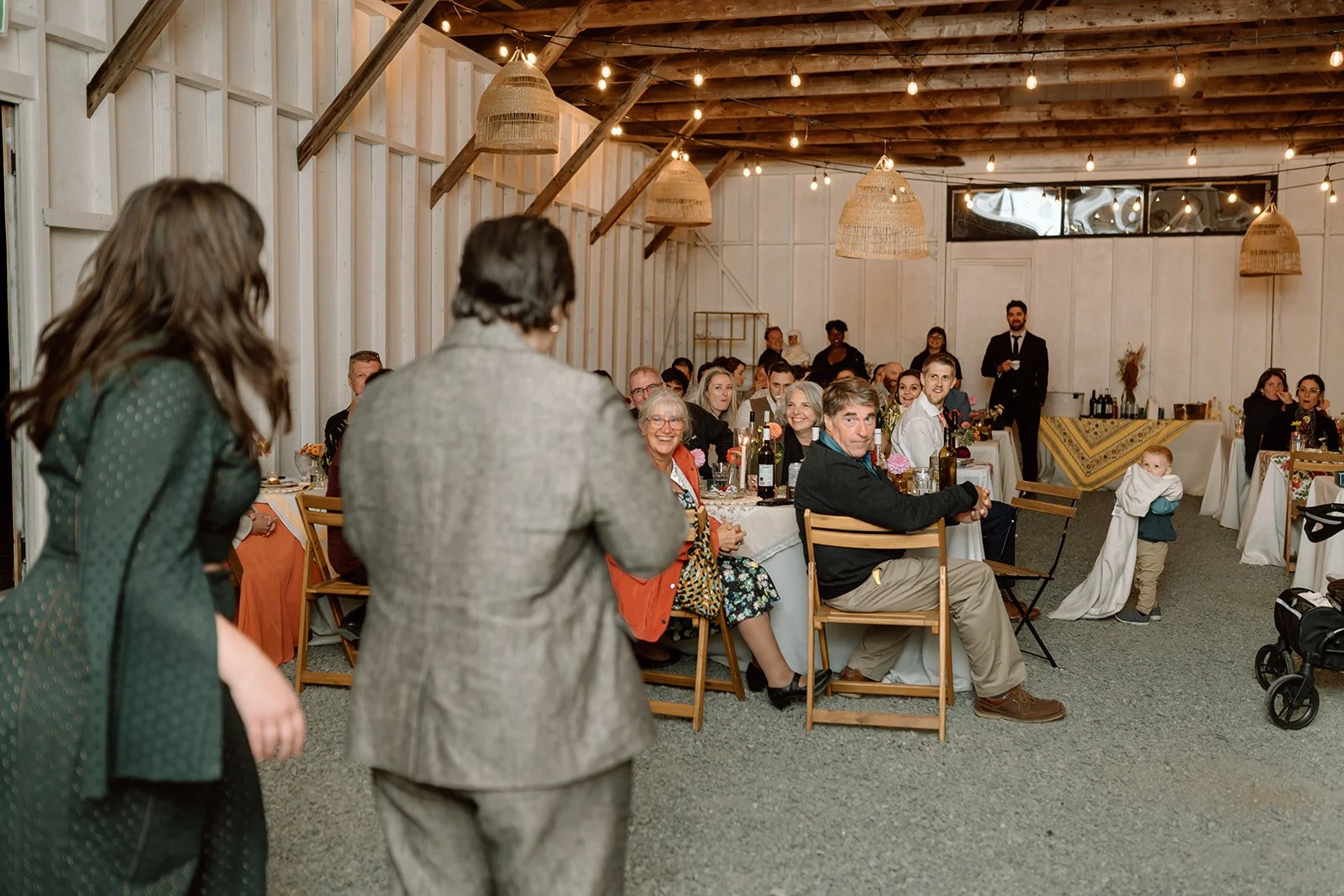 With room for up to 100 seated guests the barn is our reception space and our ceremony rain plan. With a stunning view of the sunset through the windows and an easy service side door for your caterer it’s the perfect place to eat delicious food and then dance the night away