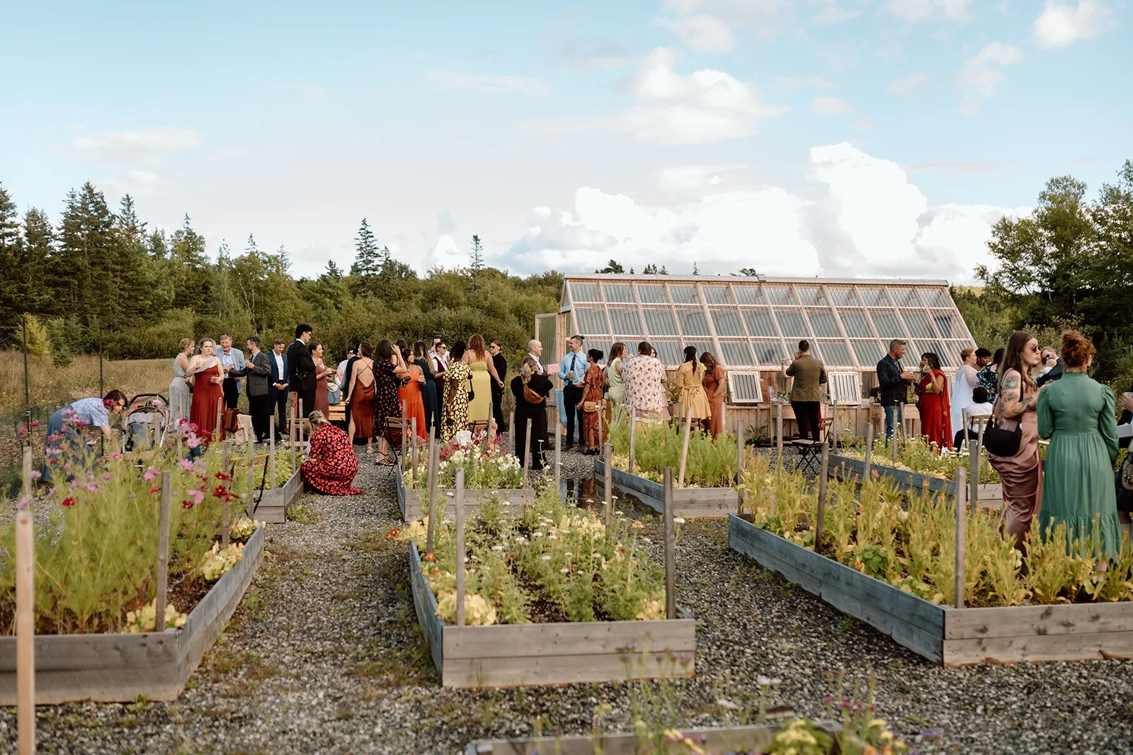With 18 raised beds of specialty flowers and a 24 ft long greenhouse the garden is a space you might visit a few times over the course of your celebration - for an upick to harvest flowers for your event, for a rehearsal dinner with your closest people, or for a drink or a snack during your cocktail hour.